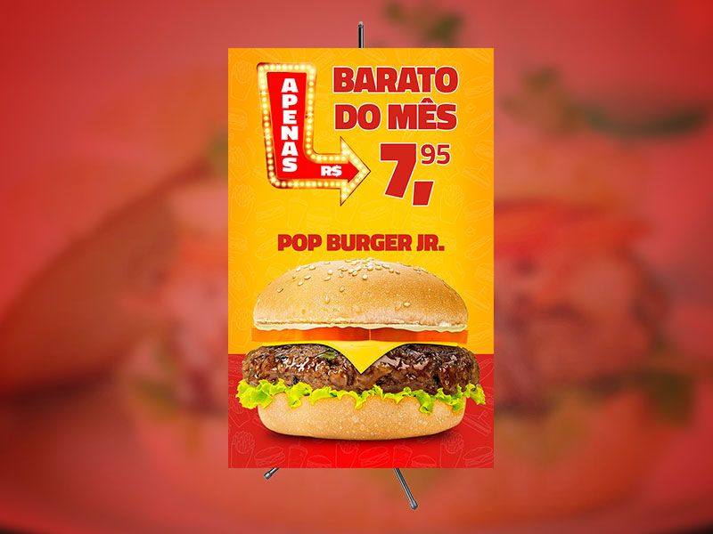 Criação do design gráfico para banner de lançamento de um novo produto para a POP Burger.