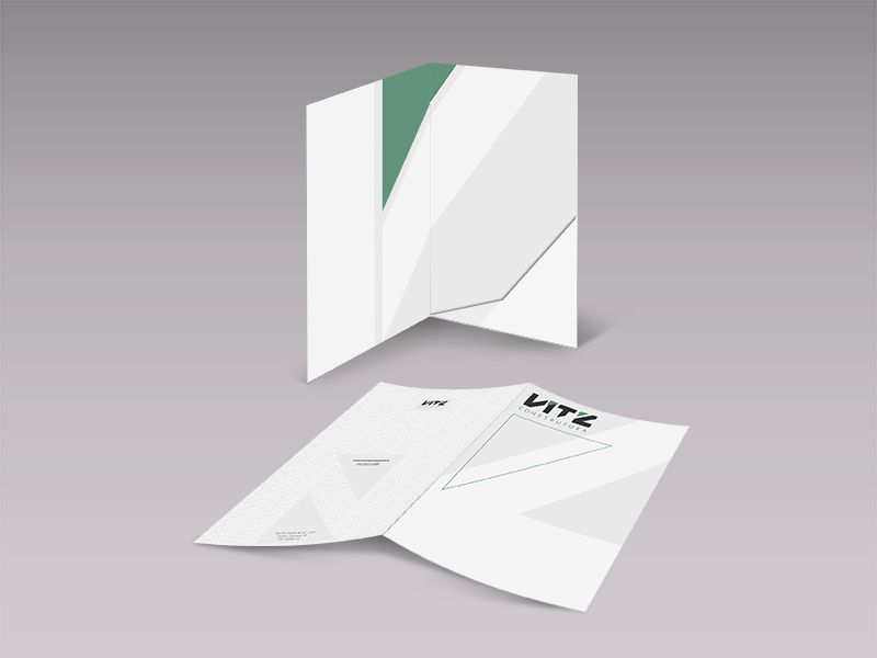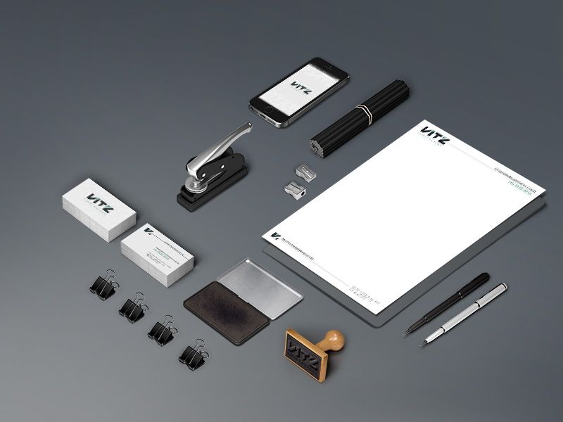 Criação de Identidade visual completa composta por logotipo, manual de marca, cartão de visita, pasta, papel timbrado, assinatura de e-mail e envelope PMG para a empresa Vitz Engenharia.