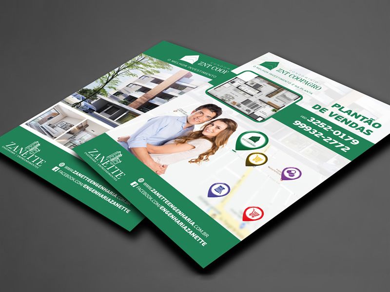 Criação de design gráfico para panfleto frente/verso da empresa Zanette Engenharia.