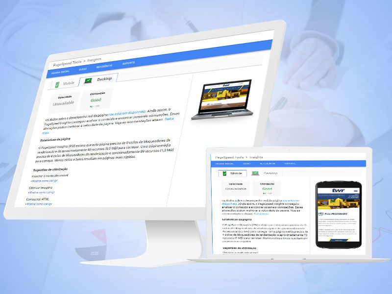 O teste do site da TWR Transportadora foi realizado no dia 27/04/2018 e obteve 92/100 pontos para Desktop e 94/100 pontos para Móbile.