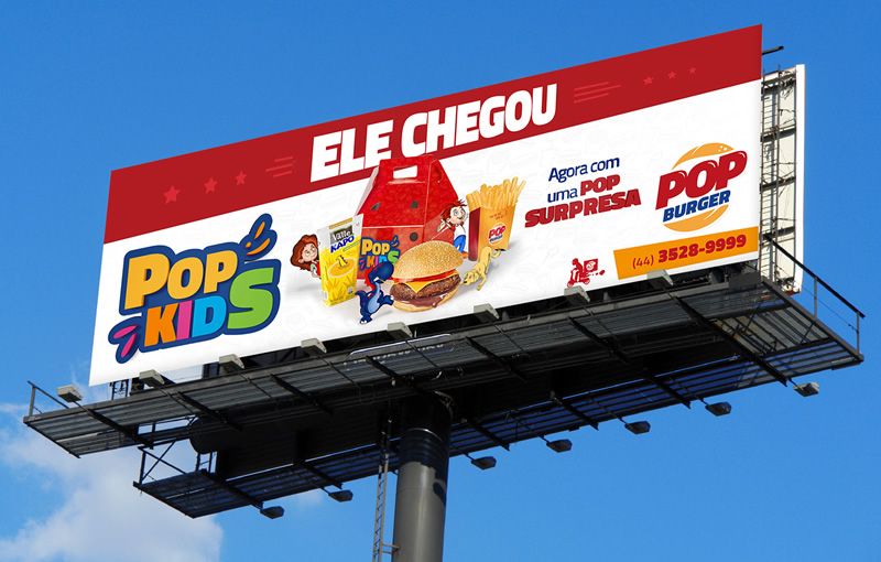 Planejamento e criação de campanha publicitária da empresa POP Burger, para veiculação em outdoor.
