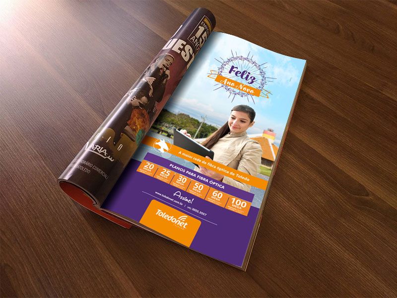 Planejamento e criação de campanha publicitária da empresa Toledonet, para veiculação em revista de circulação regional.